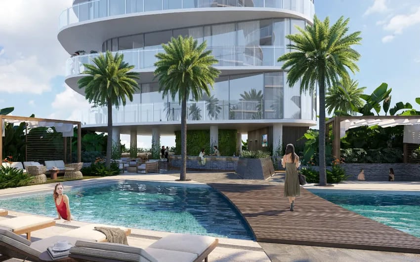 Set directly on the oceanfront , the project is designed as a private sanctuary integrating architecture with natural and ocean views. Residents have access to a resort-style pool , a world-class spa with a hammam and cold plunge , a state-of-the-art Technogym fitness center , and a landscaped park by West 8 that connects the residences to the ocean.