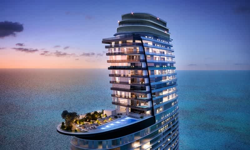 The Aston Martin Residences is a 66 story sail-shaped building, with 490 feet of water frontage. It offers private lobbies, fitness center with spa, an infinity pool on the 55th floor, a yacht marina, Miami River views and more. Residences at the Aston Martin range from one- to four-bedrooms, as well as seven penthouses and a duplex penthouse. The unique experience of living at Aston Martin is full of luxury, and all about authenticity. The interior spaces and the building share a common element with Aston Martin cars: the Fibonacci series. The company drew on the natural integer sequence to come up with proportions for the designs in the building. This balances the exterior proportions of the various parts of its sports cars.