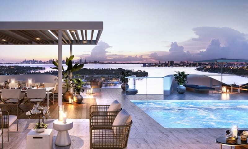 Monaco Yacht Club & Residences is a luxury waterfront residential building, designed by internationally acclaimed architectural firm, Arquitectonica. The building rises 12 stories and features striking architecture, views of the Atlantic Ocean, Biscayne Bay, and the downtown Miami skyline, and 37 residences with one to four bedroom models. Inspired by the French Riviera’s enduring glamour, Piero Lissoni contributes with a modern Mediterranean concept to the heart of Miami Beach. Residences at Monaco feature floor-to-ceiling glass windows, panoramic views of Biscayne Bay, the Atlantic Ocean and the Miami skyline, outdoor living spaces which seamlessly blend with the indoors, deep soaking tubs, spa-like bathrooms, and much more. Its location is conveniently close to open-air cafés of the Design District, the indie boutiques and art of Wynwood, and the white sand beaches and culinary scene of South Beach.