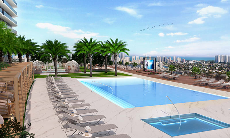Oasis Hallandale is a luxury residential complex, featuring two 25-story towers with 250 residences each. It is Hallandale’s first mix use destination, comprised of 95,000 square feet of shops, restaurants and creative office spaces. Amenities include two pools, business rooms, movie theaters, barbecue areas, yoga lawn, fitness and wellness center, and much more. Residences feature large spaces, floor-to-ceiling windows, walk-in-closets, stainless steel appliances, and spacious private balconies. Oasis residents enjoy its convenient location in Hallandale, offering proximity to Hallandale Beach, Gulfstream Park, Hollywood Boardwalk, Aventura Mall, the Hard Rock Casino, Fort Lauderdale’s Airport and Cruise Ships Port.