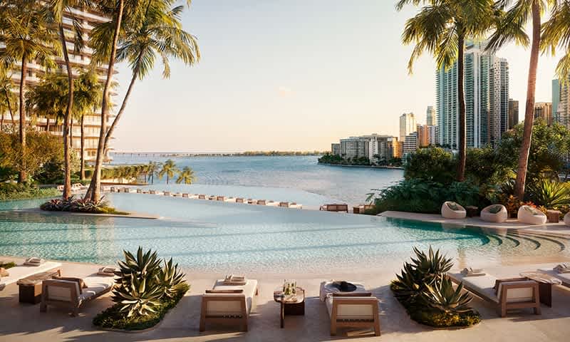 The Residences at Mandarin Oriental Miami is planned on the famous Brickell Key with two super-tall towers, a new residential building called Mandarin Residences and a new Hotel tower, in one of the most exclusive sectors in all of Miami. Interior design at the residences will be by Parisian designer Tristan Auer; landscape design will be by Thai firm Shma.