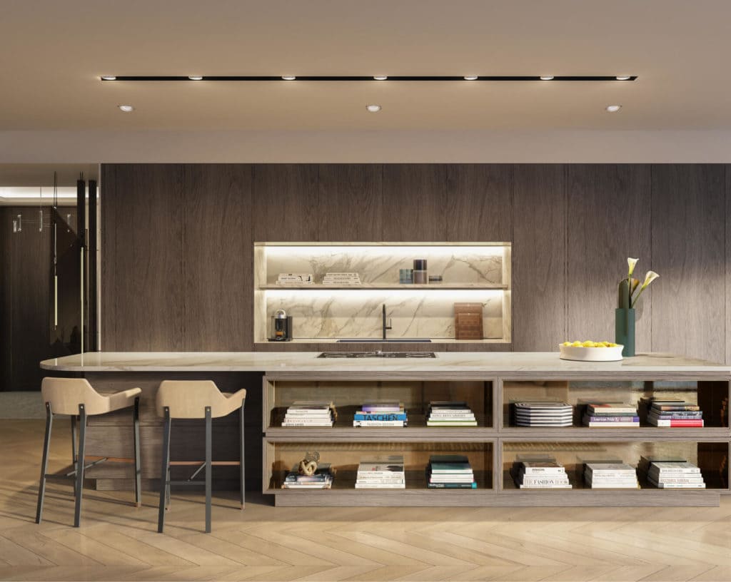 | Custom cabinetry curated by BAMO; fabricated by Italian design house Italkraft | Dornbracht and Duravit bathroom fixtures (premium European brands) |